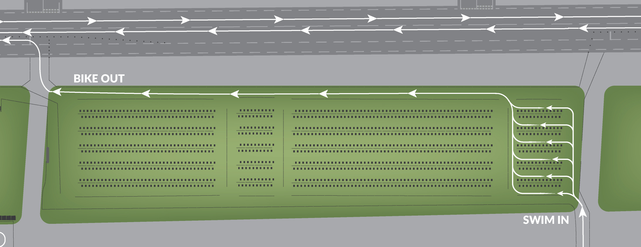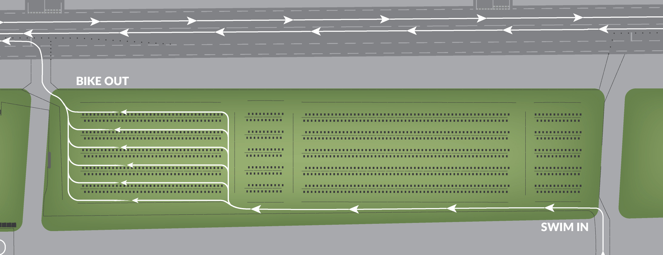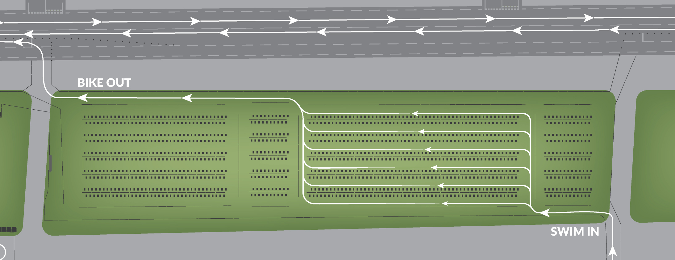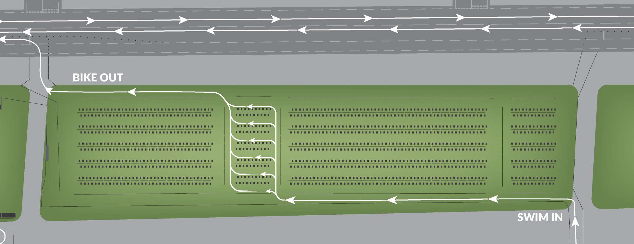 Bike check-in will take place on both Saturday afternoon and Sunday morning. Please ensure your bike sticker is on your bike and your helmet is on your head and fastened before arriving at transition check-in. You will enter and leave the transition area via the bike-check gate situated at the western end of the transition area (nearest the finish/registration area).