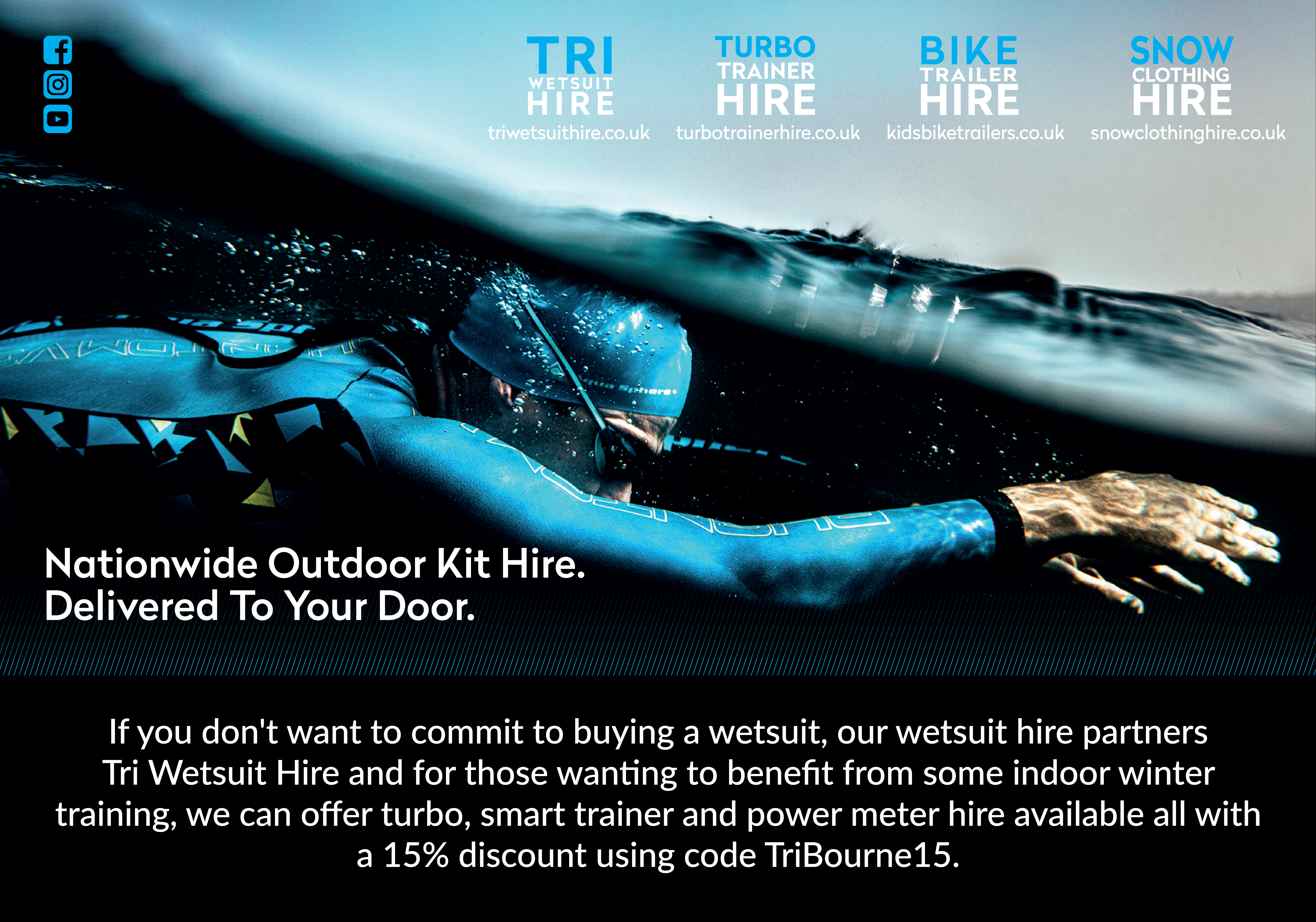 If you want to hire a wetsuit from Tri Wetsuit Hire, please book in advance using the following link. Your wetsuit will be waiting at the event on Saturday for collection. https://www.triwetsuithire.co.uk/products/tribourne-triathlon-wetsuit-hire