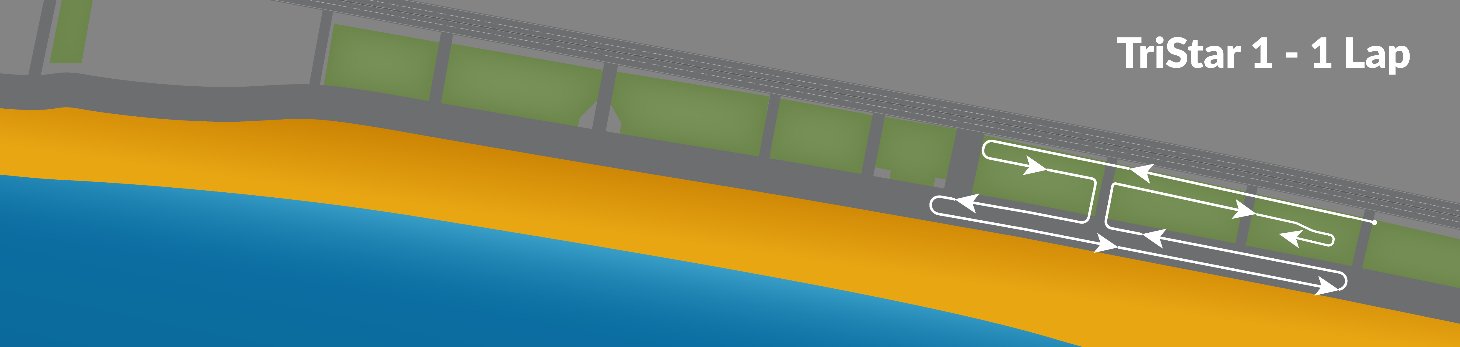 TriStars will complete various shorter laps as follows: TriStart will complete one lap of 600m, TriStar 1 will complete one lap of 1.2km, TriStar 2 will complete one lap of 1.8km and TriStar 3 will complete one lap of 2.4km.